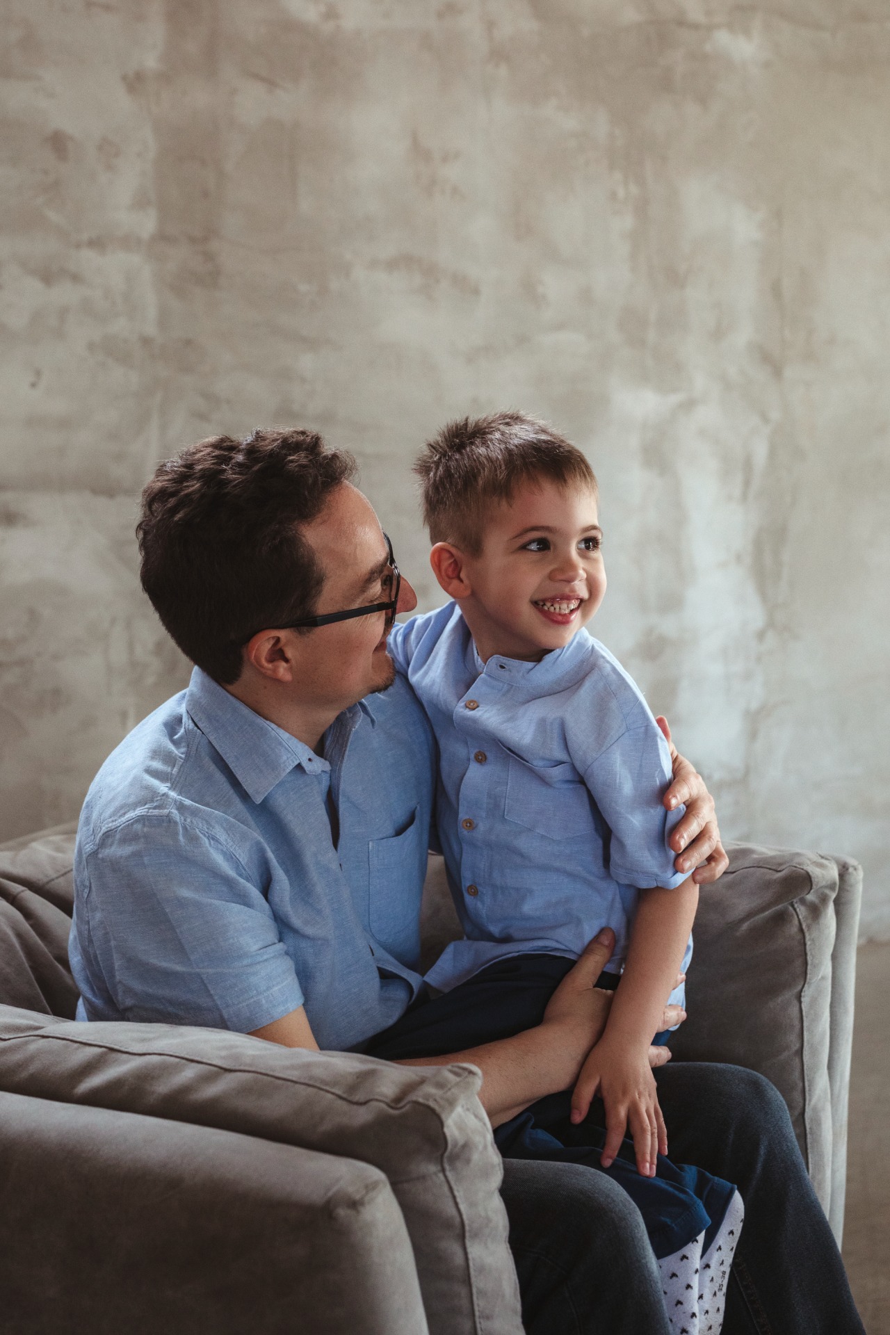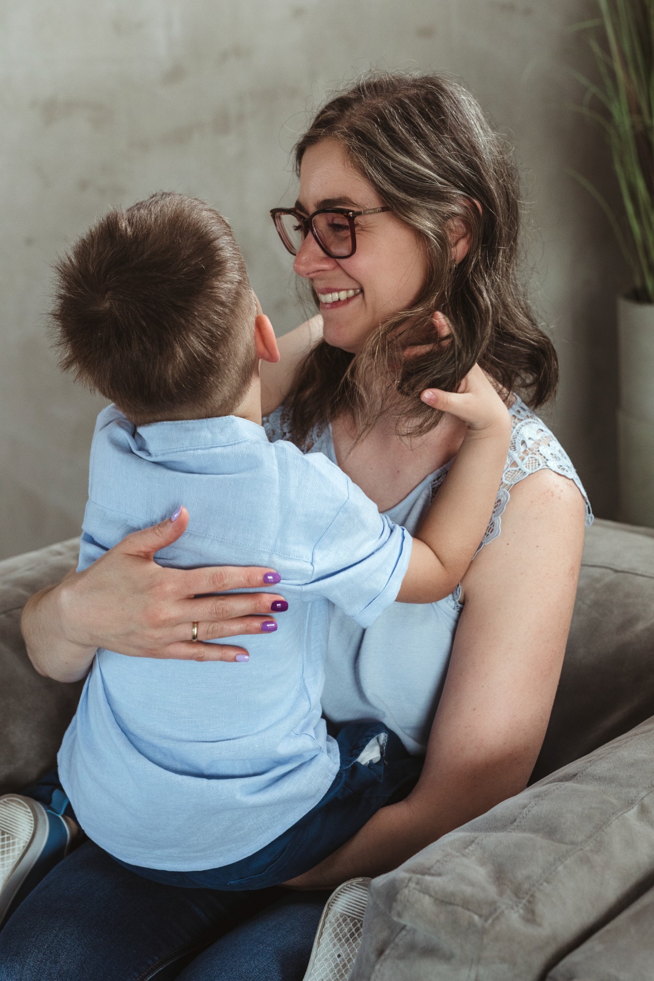 A fotózás előtt telefonon beszélgettem Annával, ezután egyértelmű volt számomra, hogy Olivér a mindenük, aki teljes harmóniában simul a családba. Személyes találkozásunkkor a legnagyobb örömömre láthattam is, hogy Olivér és a szülei mennyire hasonlóan rezegnek, milyen szépen figyelnek rá, és érzékenyen reagálnak a legapróbb jelzéseire is. Gyorsan kiderült számomra, hogy apa és fia visszahúzódóbb személyiségek, ezért külön hálás vagyok, hogy eljöttek a fotózásra és egy kicsit bepillantást engedtek nekem abba a finom szeretetkapcsolatba, ami hármójuk között van.